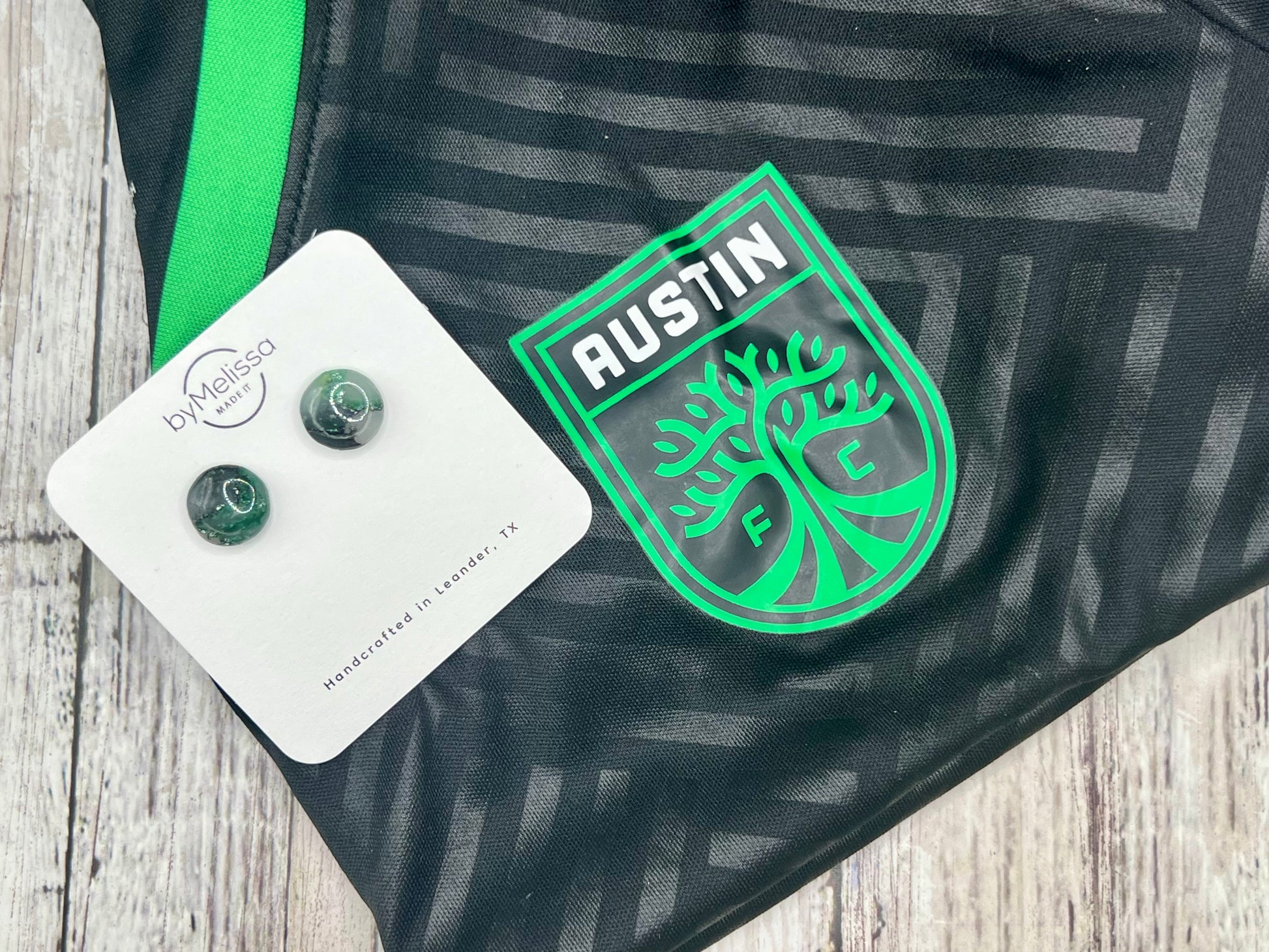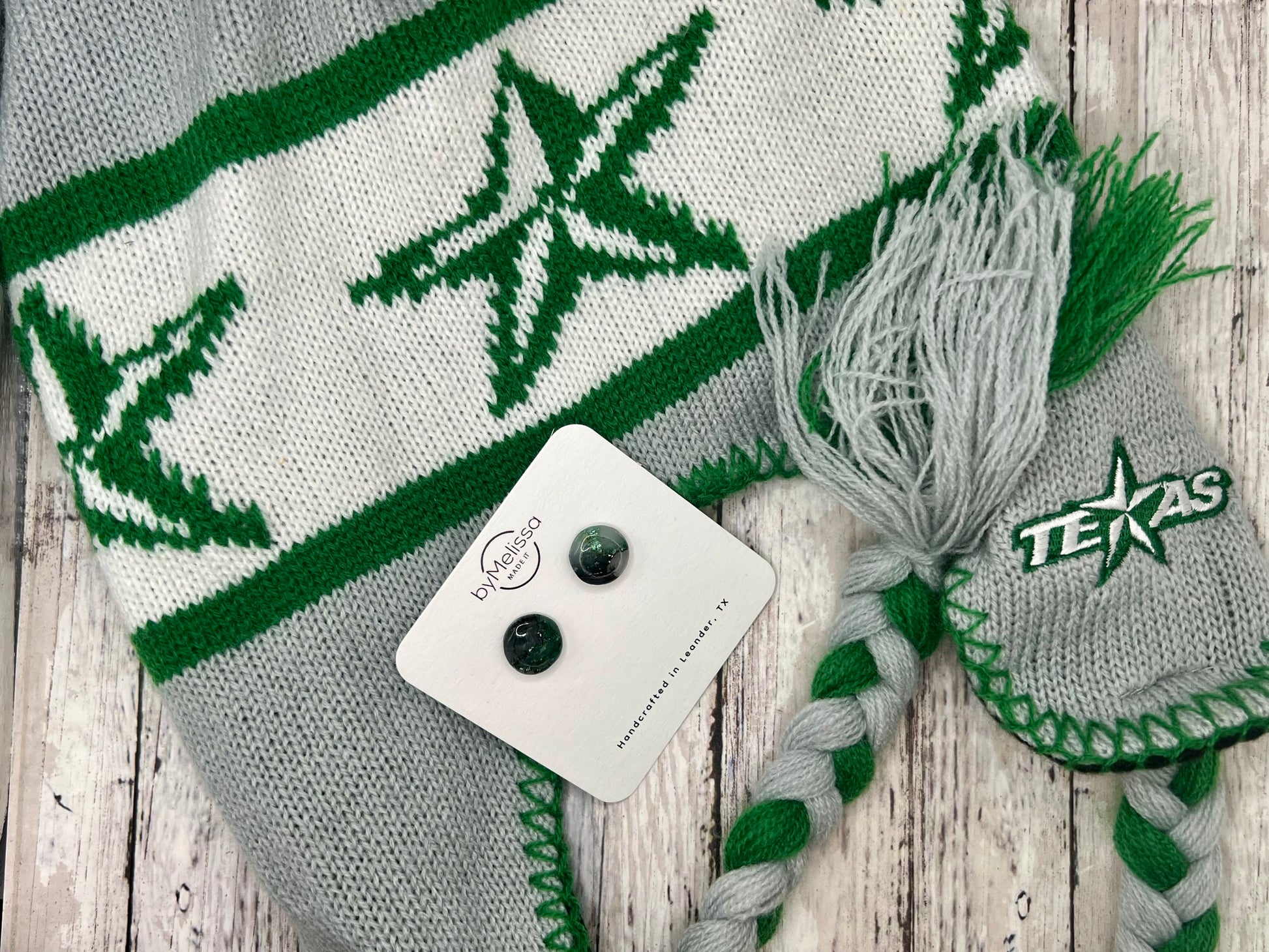 Forest Green and Black Small Embedded Circle Stud Earrings