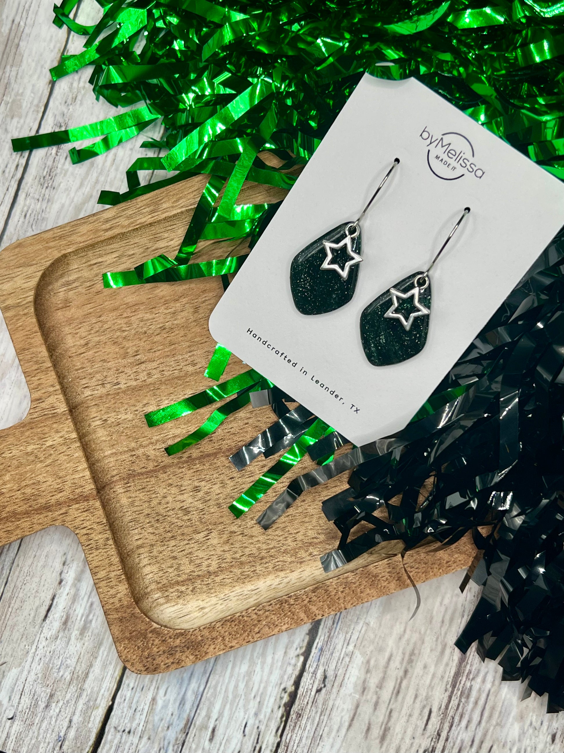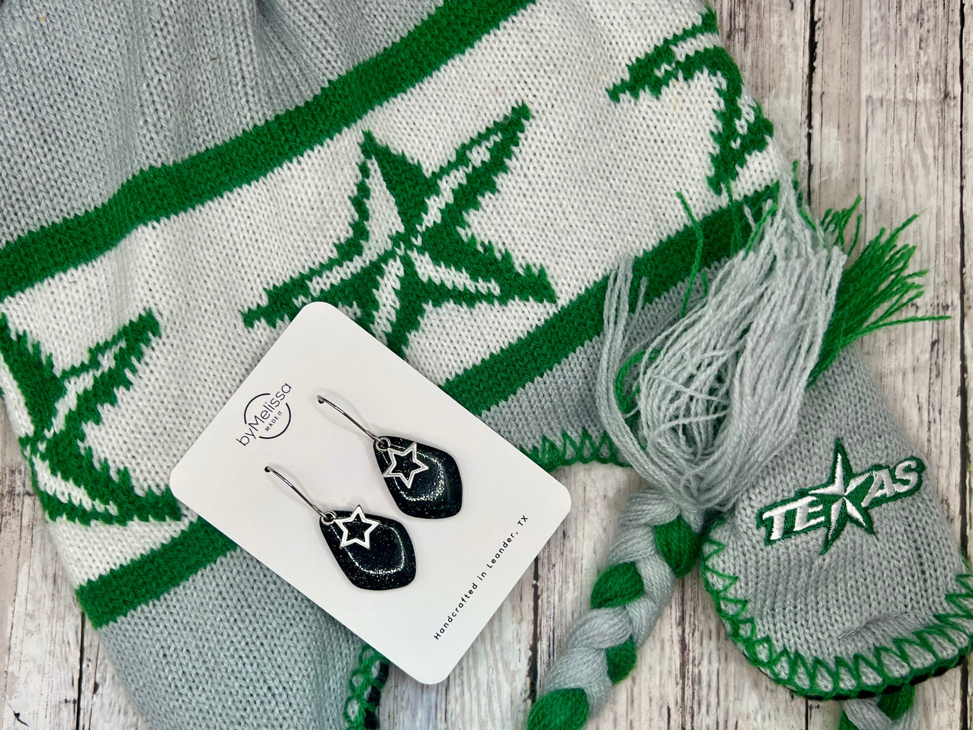 Channel sleek, sporty vibes with these Forest Green and Black Small Kite Drop Earrings—handcrafted from polymer clay and finished with a silver star charm that’s perfect for Texas Stars fans. Featuring a bold marble design with a faux stone look, these lightweight earrings are a game day essential.