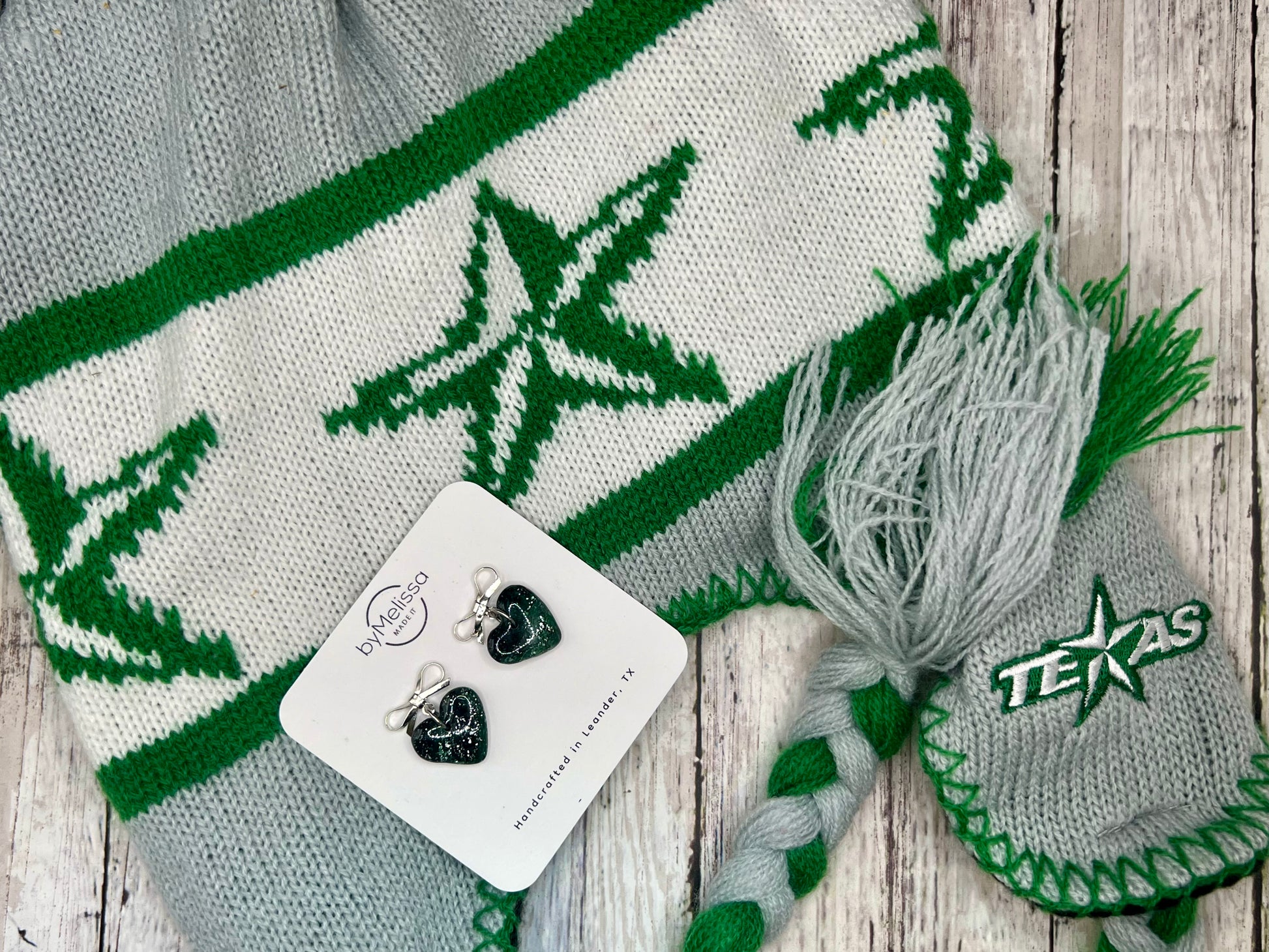 Embrace the spirit of your team with our Forest Green and Black Bowknot Heart Earrings in Silver. These earrings feature intricate bows and marbled hearts made from polymer clay, a perfect way to show your love for your team. Experience a perfect blend of style and spirit with these chic studs.
