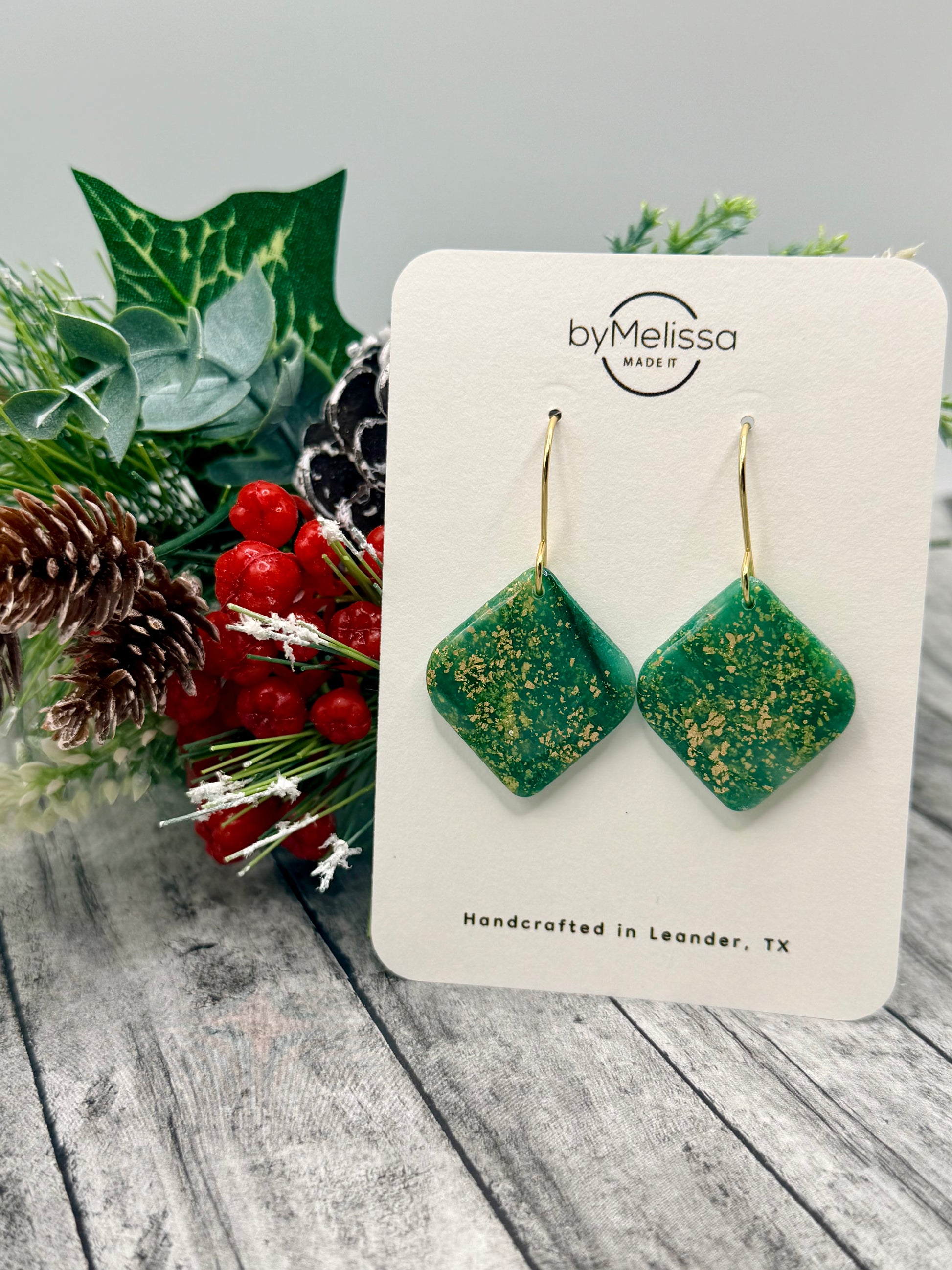 These green and gold rounded square earrings combine bold color with a sleek, minimalist shape for a timeless look. Handcrafted from polymer clay and finished with stainless steel hardware, they’re lightweight, comfortable, and easy to wear. A stylish accessory that adds just the right touch of festive shimmer to your everyday style.