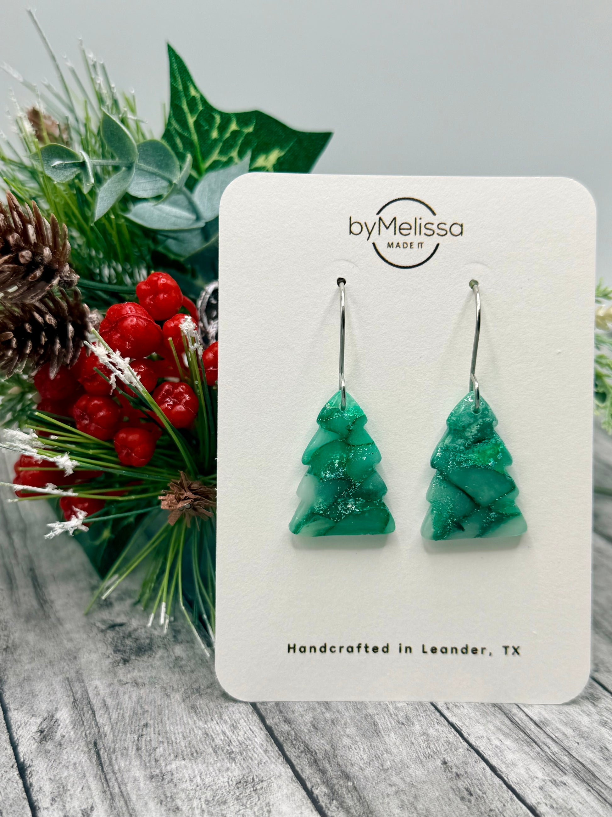 These green Christmas tree drop earrings bring festive charm and handcrafted detail to your holiday style. Made from polymer clay and finished with silver hardware, they’re lightweight, comfortable, and perfect for celebrating the season. A fun, cheerful accessory that adds a touch of Christmas spirit to any outfit.