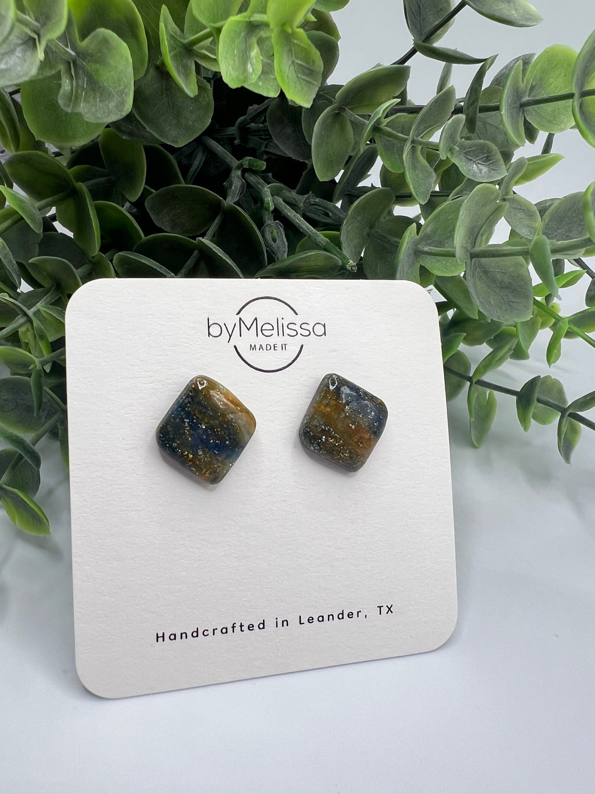 Earposts and earwires are hypoallergenic and tarnish resistant. Due to the one-of-a-kind nature of the medium, products (including exact color variations and designs) may vary slightly from the image shown.
