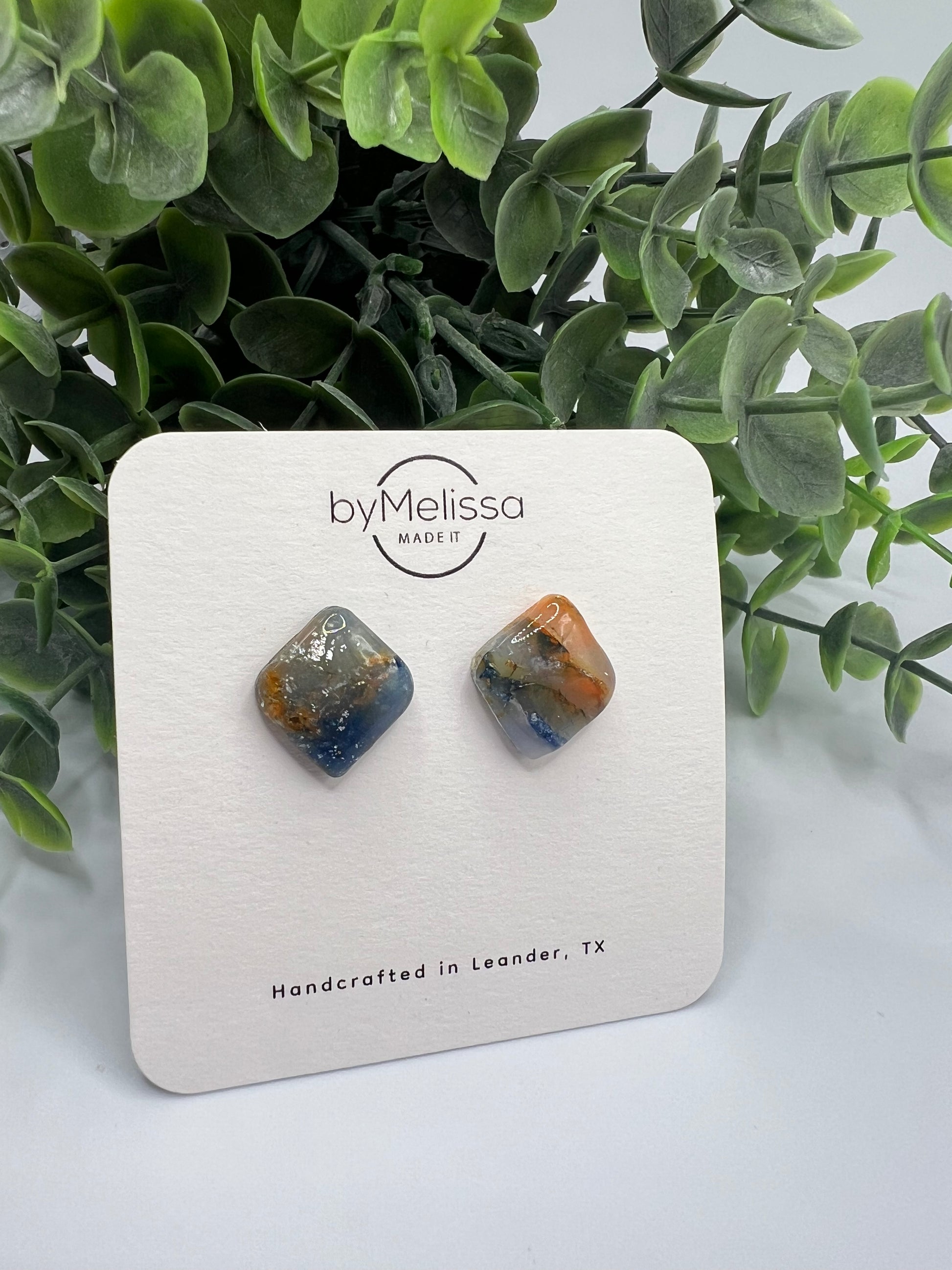 Navy and Orange Rounded Square Stud Earrings