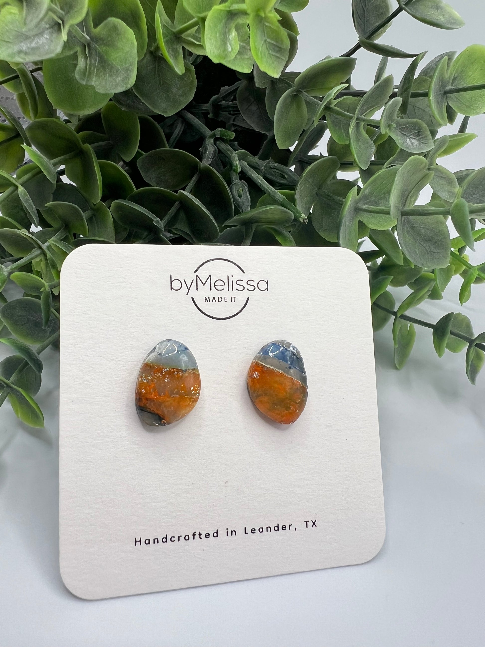 Add a touch of team spirit with our Navy and Orange Winged Stud Earrings. These earrings feature the team's signature orange and blue colors, perfect for game day. Show off your love for your team with these stylish accessories.