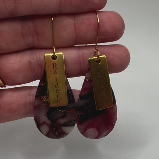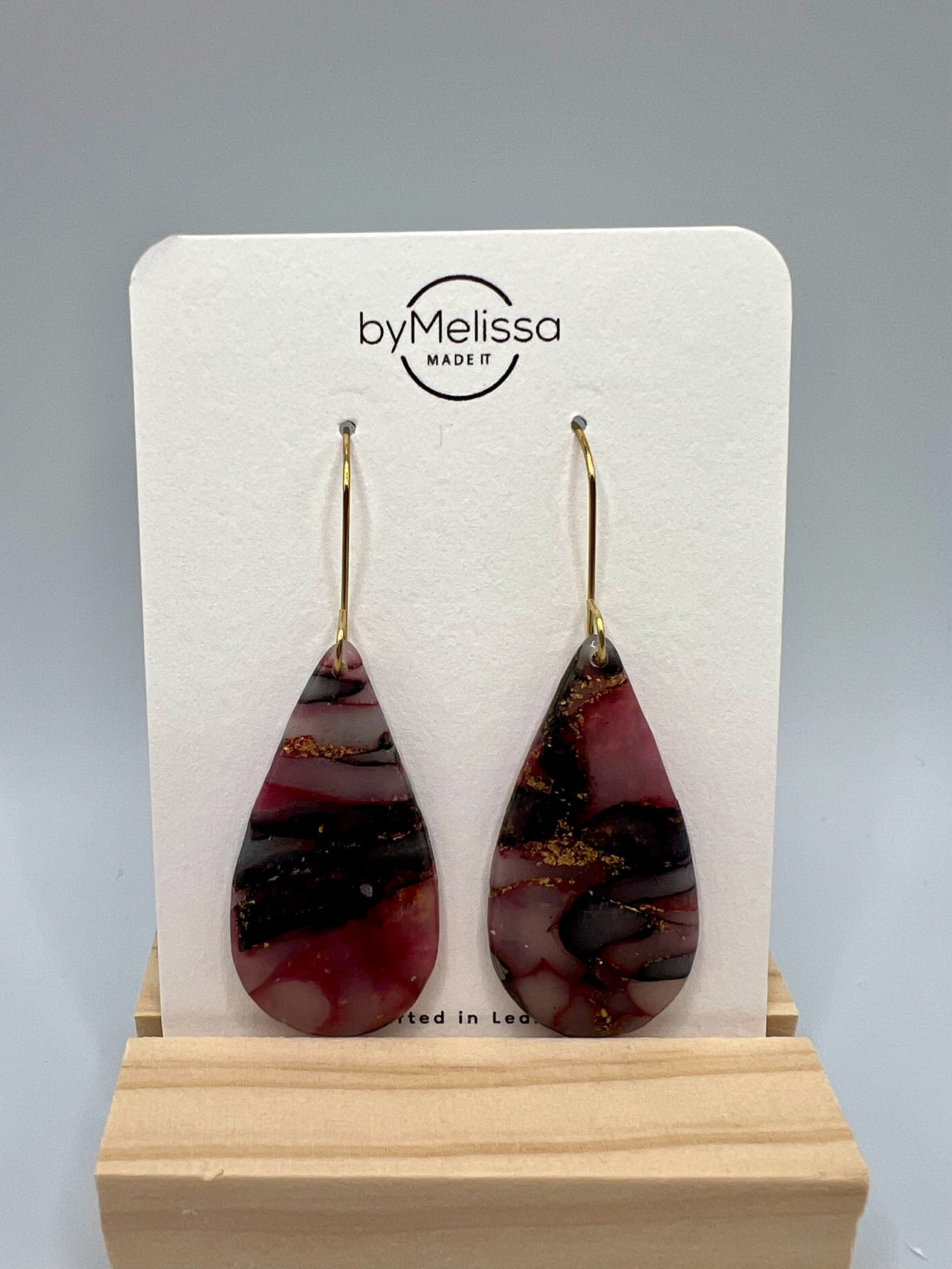 Unleash your inner rebel with our Maroon and Black Small Teardrop Drop Earrings in Gold! Made with a bold maroon and black marble design and delicate gold leaf accents, these teardrop shaped earrings will make a statement wherever you go. Handcrafted with polymer clay, they're lightweight and comfortable for all-day wear.