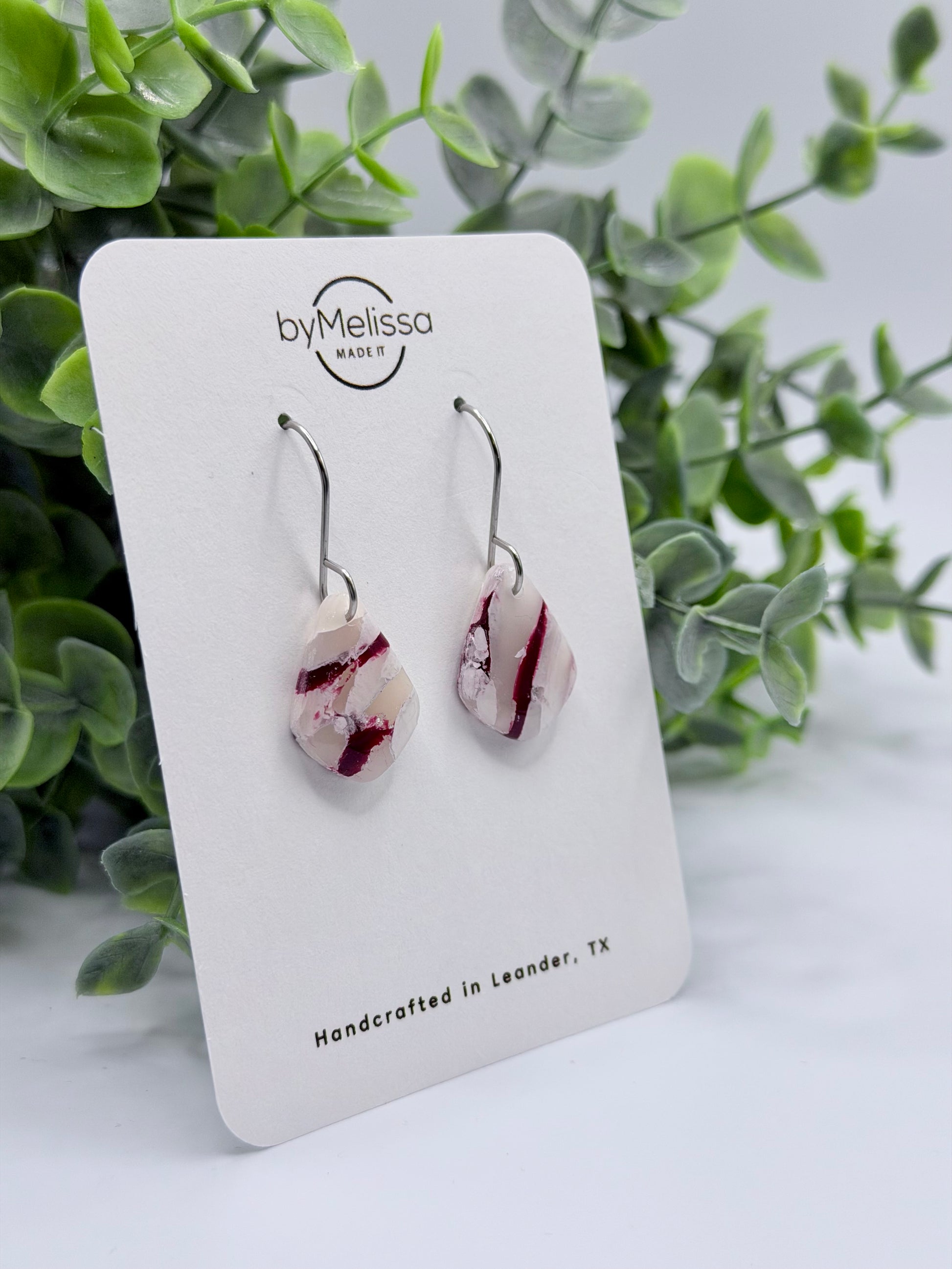 These maroon and white petite kite earrings strike the perfect balance between subtle and spirited. Handcrafted from polymer clay with sleek silver hardware, they feature rich seasonal tones that transition effortlessly from fall outfits to game day looks. Lightweight, modern, and easy to wear—your new go-to pair for any occasion.