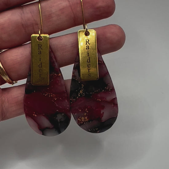 Maroon and Black Large Teardrop Drop Earrings in Gold