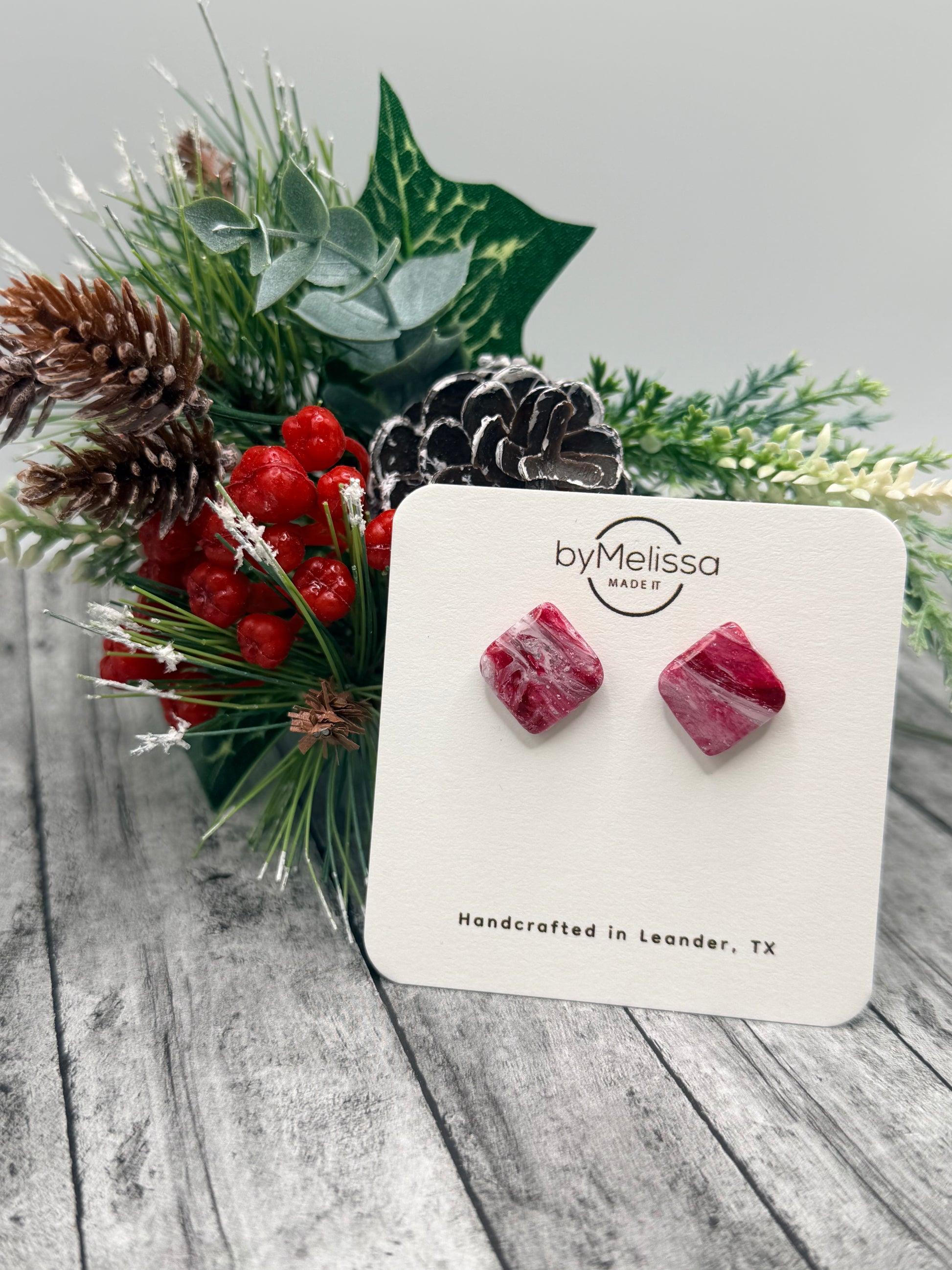 These red and white rounded square stud earrings bring a playful pop of color and modern charm to any outfit. Handcrafted from polymer clay, they’re lightweight, comfortable, and easy to wear all day long. A simple yet stylish way to add a touch of festive color to your everyday look.