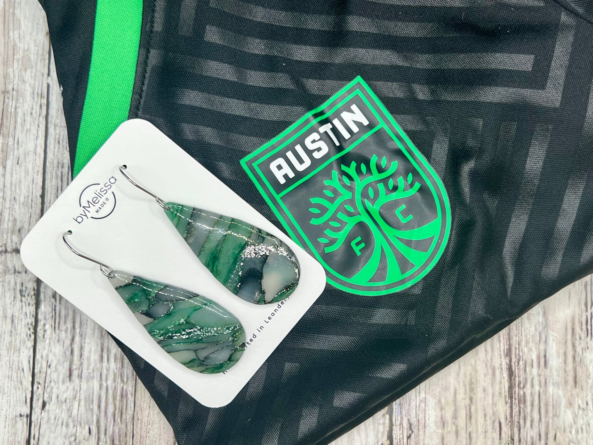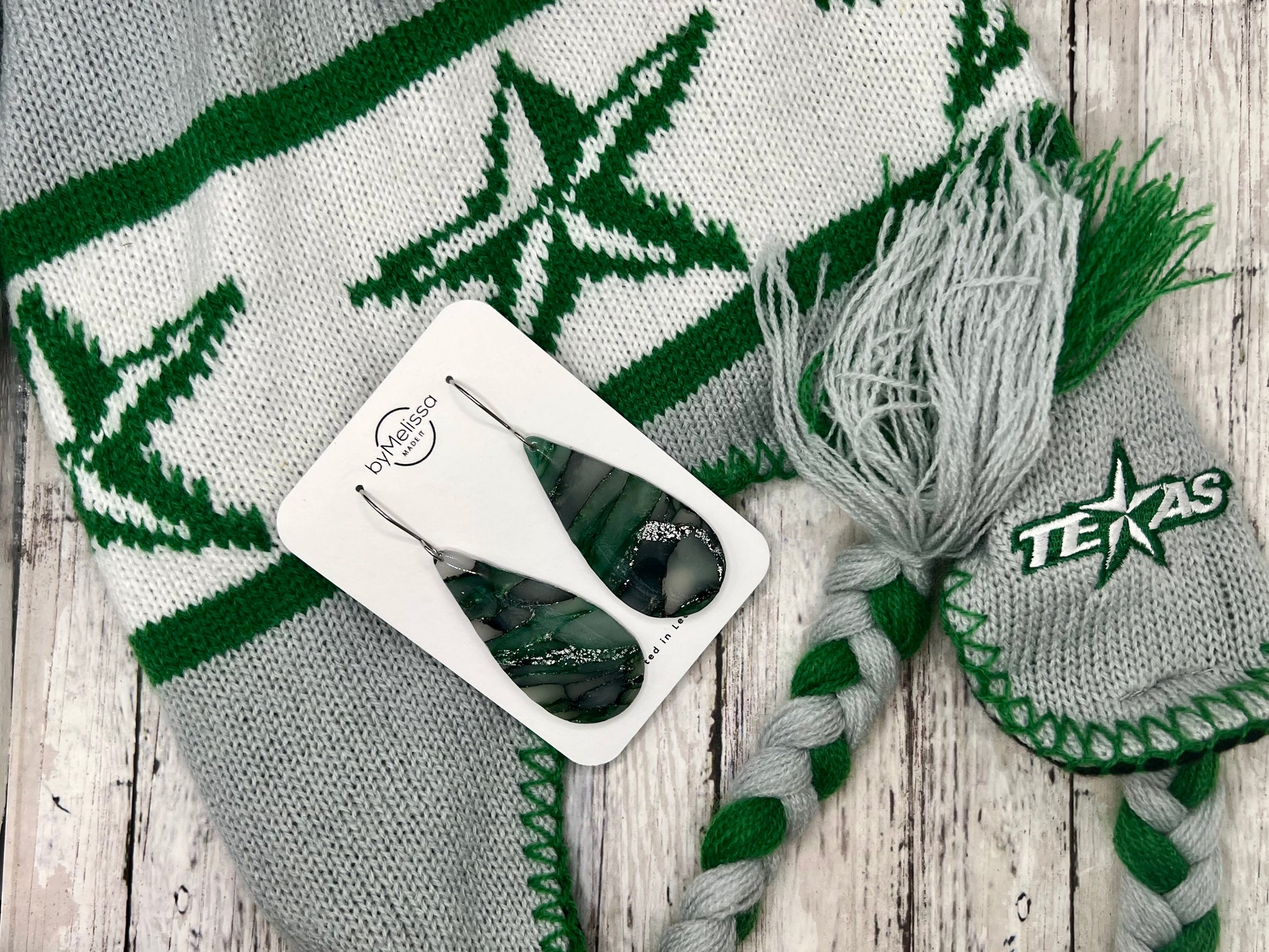Add a touch of boldness and adventure to your game day look with our Forest Green and Black Large Teardrop Drop Earrings in Silver! Handcrafted with game day spirit in mind, these earrings feature the team's iconic green and black colors with a touch of silver. Take a risk and show off your love for your team with these eye-catching earrings!