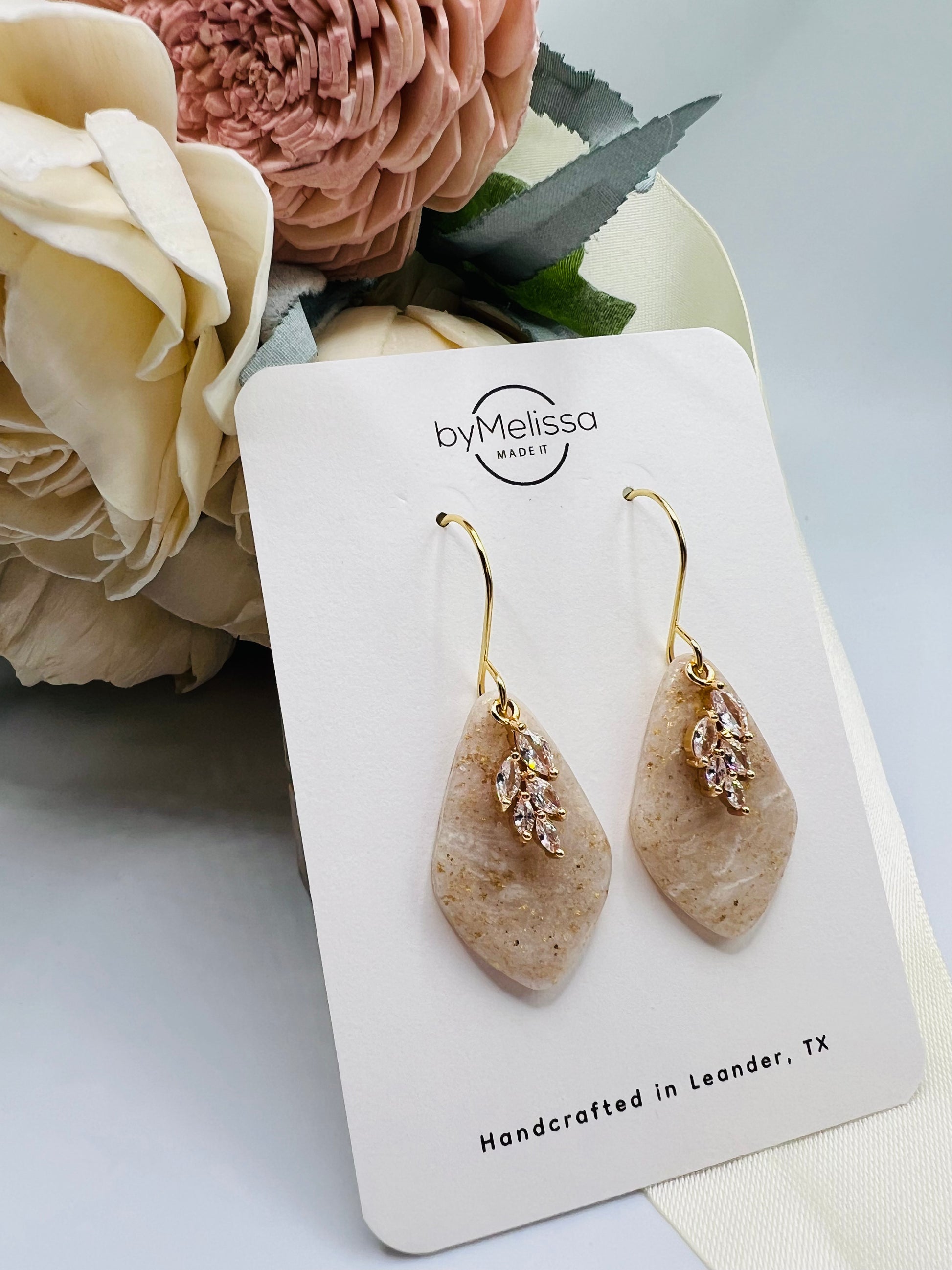Earring set paired with Gold Leaf Cubic Zirconia charm in additional pictures.